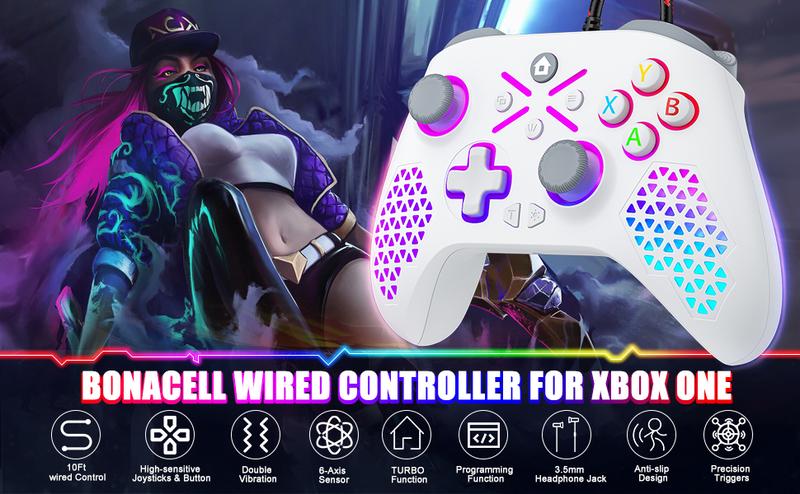 XBOX ONE RGB Controller for Xbox One/Xbox Series & PC, Programmable Macro & Turbo Gamepad with Dual Vibration